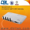 TheFour Channels GSM VoIP GatewayGoIP4is a 4 SIM Card Broadband Phone Gateway that had been developed by DBL Ltd. GOIP_4 SIM Card Broadband Phone Gateway is a new product that connect the GSM and the VOIP seamlessly. To GOIP_4 what is installed on the Mobile SIM Card, you can register the GSM telephone on the VOIP Softswitch.SIP and H.323 agreement are built in the GOIP_4 and configured flexible. Caller ID can be seen by using SIP. Flexible routing can meet the need of all kinds of call forwarding; even more special is that GOIP_4 support multi-device group, it can be easily combined into arbitrary number of channels of Large Gateway Group. Key FeaturesOpen Standard VoIP Protocols (ITU H.323 V4 and IETF SIP V2) Single or Multiple Server Registrations Two 10/100 Ethernet circuits connect to the LAN and an additional device GSM module for making GSM calls Speech quality ensured by QoS at the Ethernet and IP layers and comprehensive jitter buffer VLAN and QoS support NAT Transversal and Router functions Voice prompts, HTTP Web, Auto Provision support for configuration and updates Highly stable embedded Linux operating system in high performance ARM 9 Processor Basic FeaturesLEDs for Power, Ready, Status, WAN, PC, GSM Call forward from GSM to VoIP and VoIP to GSM Dial in mode or dial out mode only Dial Plan Password protection for both GSM dial in or dial out Retransmit GSM Caller ID to VoIP terminal